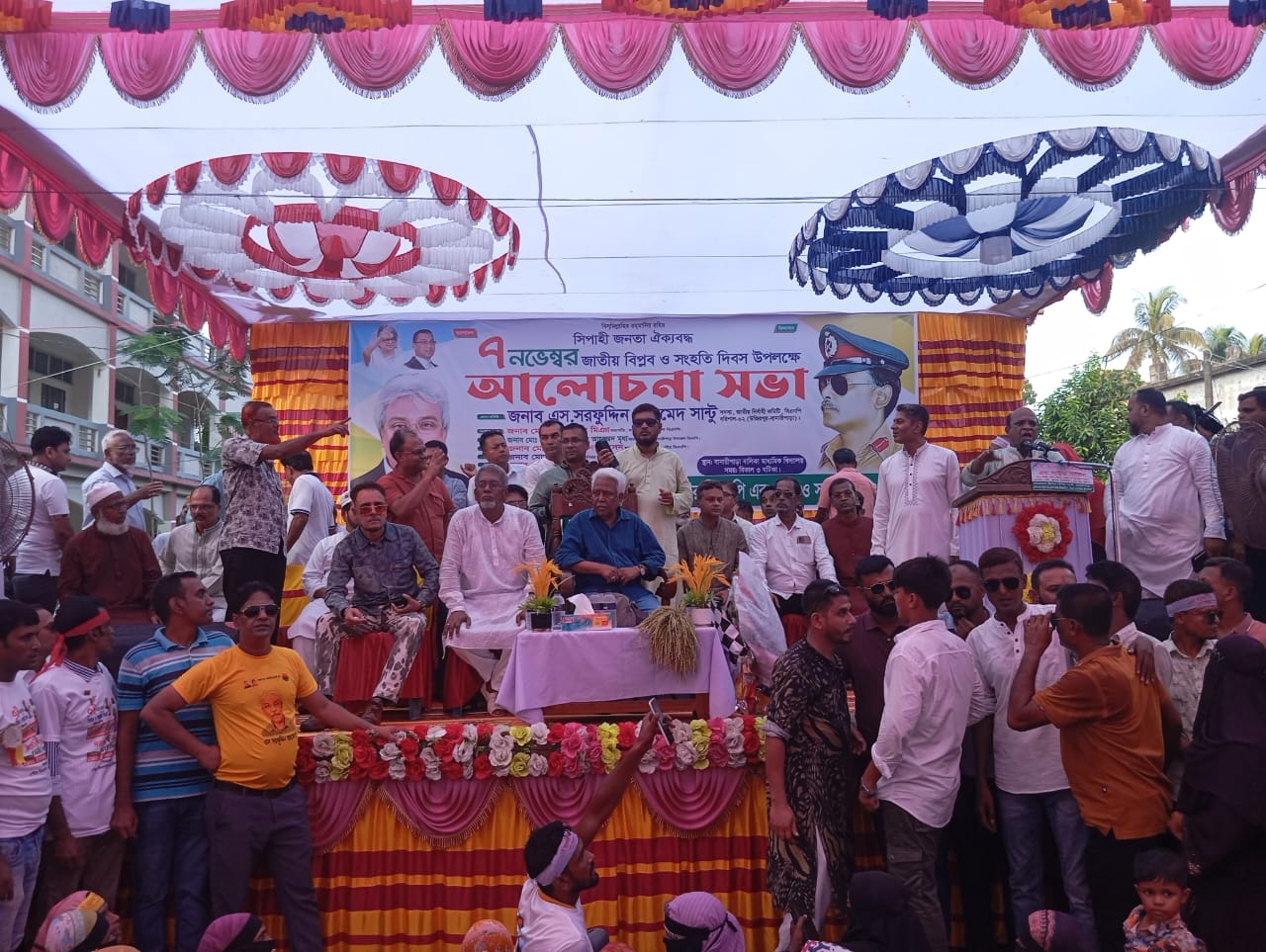 বরিশালের গৌরনদী উপজেলায় ঐতিহাসিক ৭ নভেম্বর জাতীয় বিপ্লব ও সংহতি দিবস যথাযোগ্য মর্যাদায় পালিত হয়েছে। এ উপলক্ষে শুক্রবার (৭ নভেম্বর) বিকেলে সরকারি গৌরনদী পাইলট মাধ্যমিক বিদ্যালয়ের মাঠে বাংলাদেশ জাতীয়তাবাদী দল (বিএনপি)’র উদ্যোগে এক আলোচনা সভা অনুষ্ঠিত হয়।সভায় প্রধান অতিথি হিসেবে উপস্থিত ছিলেন বিএনপি কেন্দ্রীয় কমিটির যুগ্ন মহাসচিব বিএনপি চেয়ারপারসন আন্তরজাতিক উপদেষ্টা হুমায়ুন কবির। চেয়ারপারসনের উপদেষ্টা ও বরিশাল-১ আসনের বিএনপি মনোনীত সংসদ সদস্য প্রার্থী জনাব জহির উদ্দিন স্বপন সভাপতিত্ব করেন। প্রধান অতিথি ও বক্তা হিসেবে উপস্থিত ছিলেন বিএনপি কেন্দ্রীয় যুগ্ম মহাসচিব হুমায়ুন কবির। প্রধান বক্তার বক্তব্যে তিনি বলেন,দেশের উন্নয়ন ও গণতন্ত্র পুনরুদ্ধারে ধানের শীষের বিজয় এখন সময়ের দাবি। তাই সবাইকে ঐক্যবদ্ধ হয়ে প্রতিটি ঘরে ঘরে যেতে হবে, জনগণকে ভোটের অধিকারের জন্য জাগ্রত করতে হবে।”সভায় সভাপতির বক্তব্যে জহির উদ্দিন স্বপন বলেন, আজ থেকে আওয়ামী লীগসহ যেকোনো রাজনৈতিক দল, ব্যক্তি বা সংগঠন যদি ধানের শীষ প্রতীকের পক্ষে কাজ করতে চায়, বিএনপি তাদের জন্য দরজা খুলে দিয়েছে।জাতীয় ঐক্যের মাধ্যমে জনগণের সরকার প্রতিষ্ঠাই এখন আমাদের একমাত্র লক্ষ্য।”ভায় আরও বক্তব্য রাখেন বরিশাল জেলা (উত্তর) বিএনপির সদস্য সচিব মিজানুর রহমান খান মুকুল, গৌরনদী উপজেলা বিএনপির আহ্বায়ক সৈয়দ হোসেন বিপ্লব, আগৈলঝাড়া উপজেলা বিএনপির ভারপ্রাপ্ত আহ্বায়ক, গৌরনদী উপজেলা বিএনপির যুগ্ম আহ্বায়ক বদিউজ্জামান মিন্টু, সদস্য সচিব হান্নান শরীফ, এবং গৌরনদী পৌর বিএনপির আহ্বায়ক শফিকুল ইসলাম শরীফ স্বপন প্রমুখ। দীর্ঘ ১৭ বছর পর সরকারি গৌরনদী পাইলট মাধ্যমিক বিদ্যালয়ের মাঠে বিএনপির এমন বিশাল সমাবেশে কর্মী-সমর্থকদের ঢল নামে।