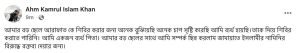এর প্রতিক্রিয়ায় হাফেজ কামরুল ইসলাম খান তার সামাজিক যোগাযোগমাধ্যমে লেখেন —