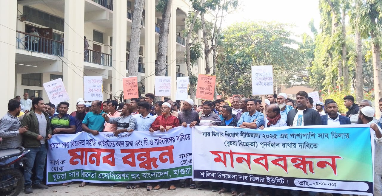 মাগুরায় খুচরা সার বিক্রেতাদের মানববন্ধন