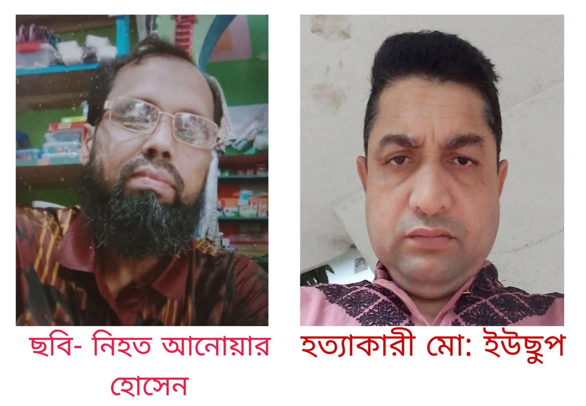 হত্যাকারী হিসেবে অভিযুক্ত মো. ইউছুপ ওই গ্রামের মাইজের বাড়ির মৃত এরশাদ হোসেনের ছেলে। তিনি সৌদি আরব থেকে ২০২৪ সালে দেশে ফিরে যুবদলের বিভিন্ন কার্যক্রমে যোগ দেন এবং স্থানীয় সন্ত্রাসী কর্মকাণ্ডে জড়িয়ে পড়েন বলে স্বজনদের দাবি।