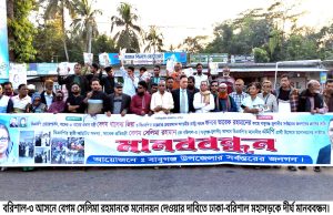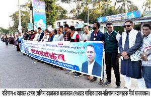 সেলিমা রহমানের মনোনয়ন দাবিতে ঢাকা-বরিশাল মহাসড়কে বিক্ষোভ মানববন্ধন