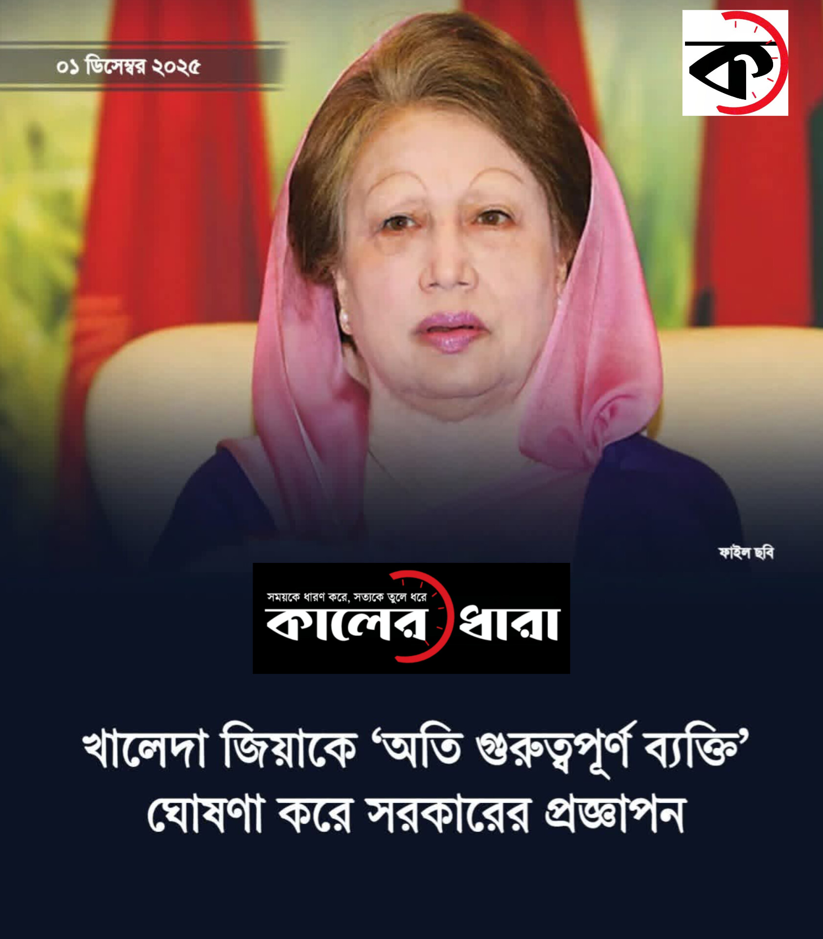 বিশেষ নিরাপত্তা বাহিনী (স্পেশাল সিকিউরিটি ফোর্স) আইন, ২০২১-এর ধারা ২(ক) অনুযায়ী সাবেক প্রধানমন্ত্রী বেগম খালেদা জিয়াকে ‘অতি গুরুত্বপূর্ণ ব্যক্তি’ হিসেবে ঘোষণা করা হলো। নির্দেশটি অবিলম্বে কার্যকর হবে।