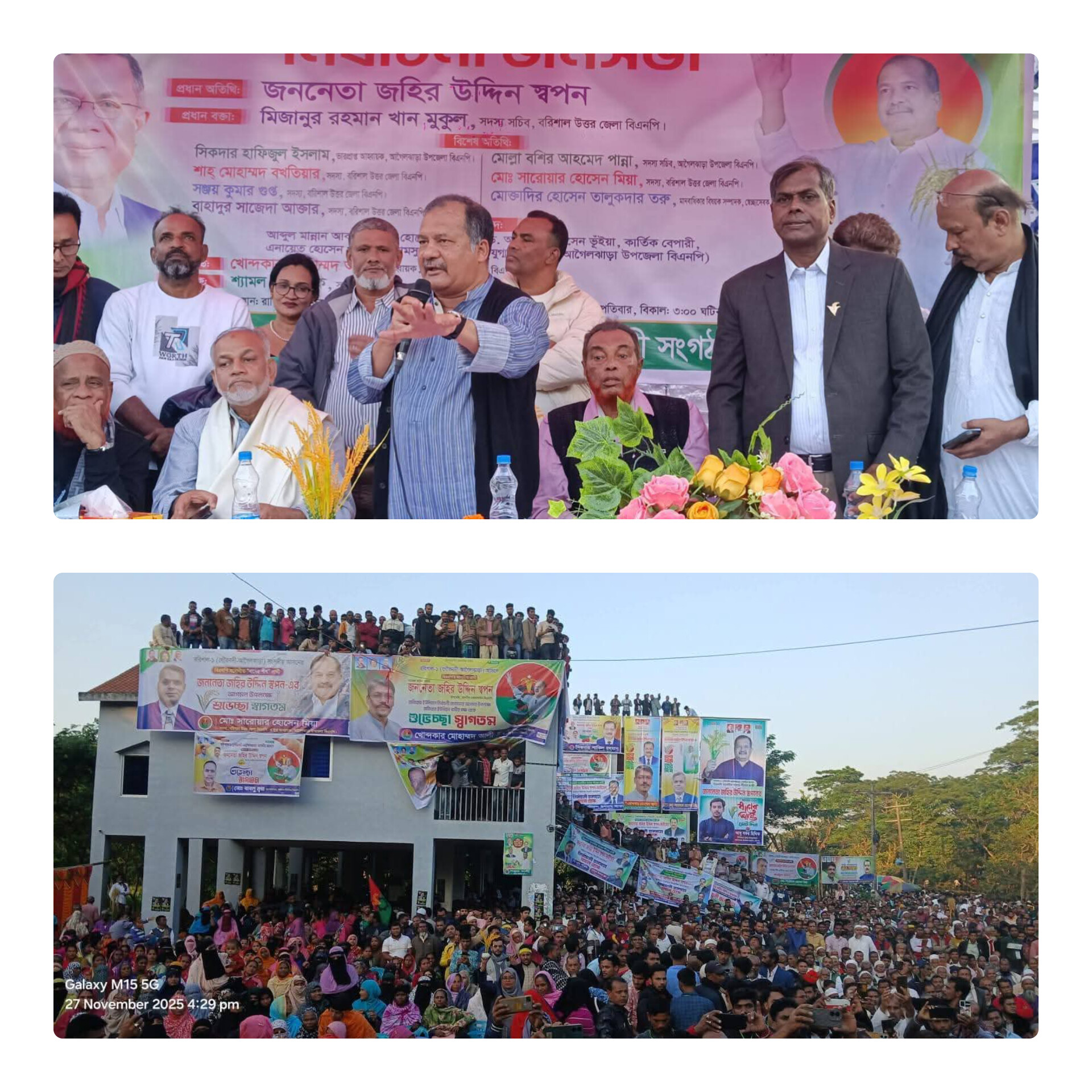 বরিশাল-১ আসনে বিএনপি প্রার্থী পরিবর্তনের দাবিতে জনসমাবেশ
