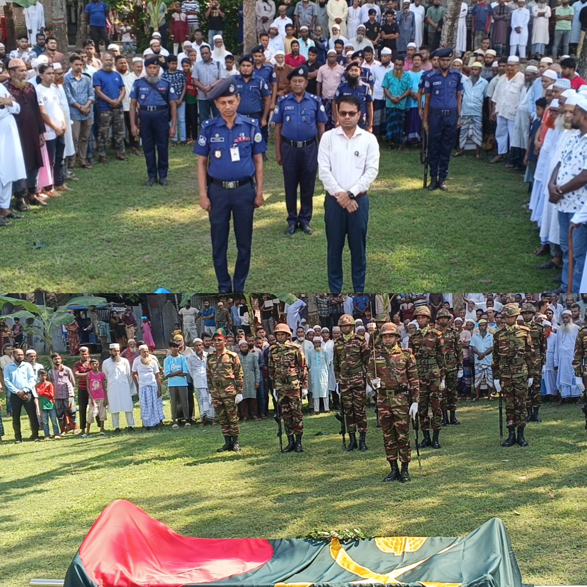 গৌরনদীতে রাষ্ট্রীয় মর্যাদায় বীর মুক্তিযোদ্ধা শামসুল আলম সরদারের দাফন সম্পন্ন