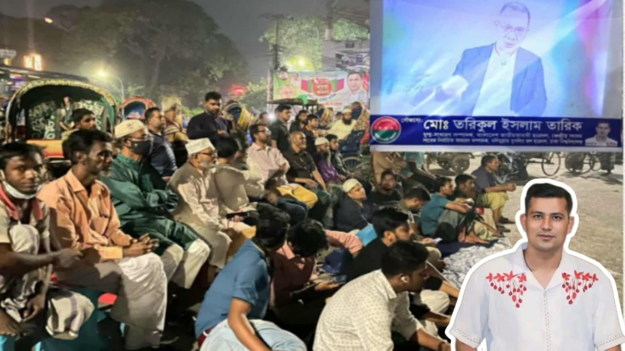 তারেক রহমানের সাক্ষাৎকার বড় পর্দায় প্রদর্শন।