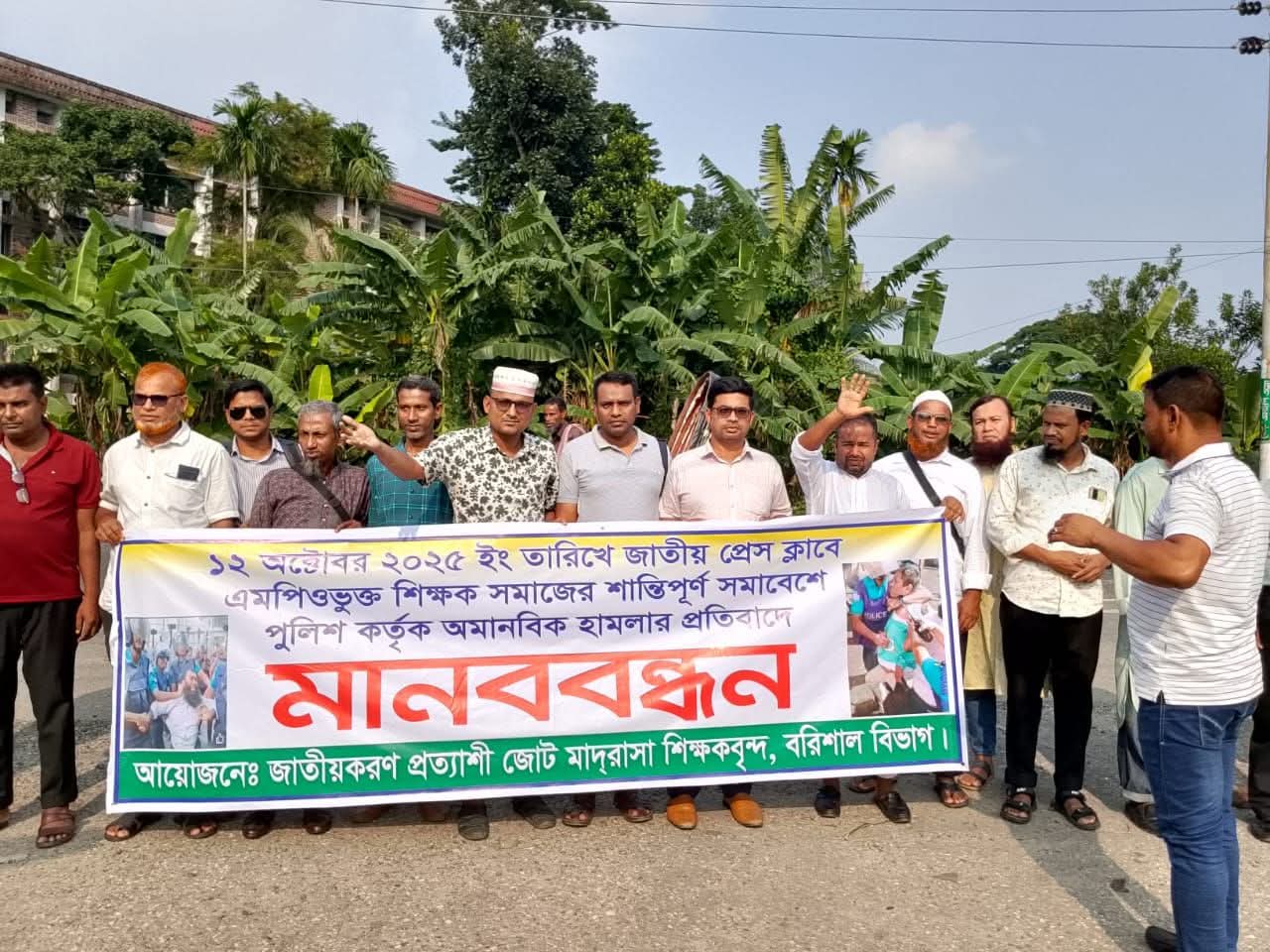 ঢাকা-বরিশাল মহাসড়কে মাদ্রাসা শিক্ষকদের মানববন্ধন অনুষ্ঠিত